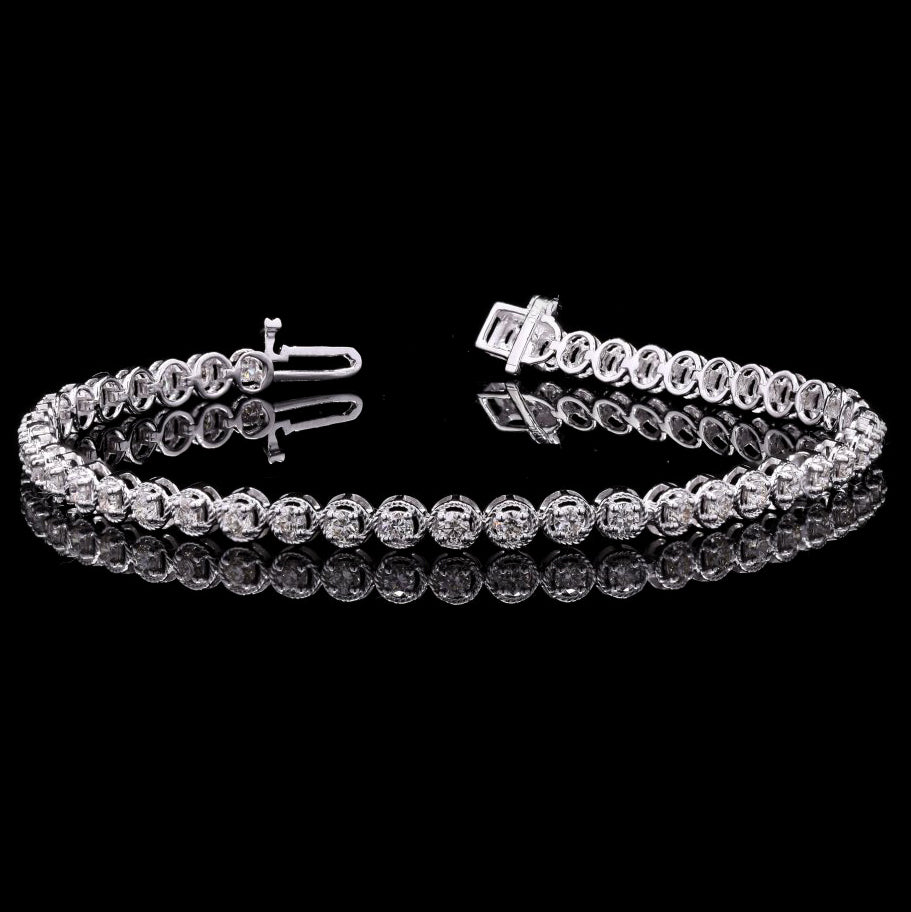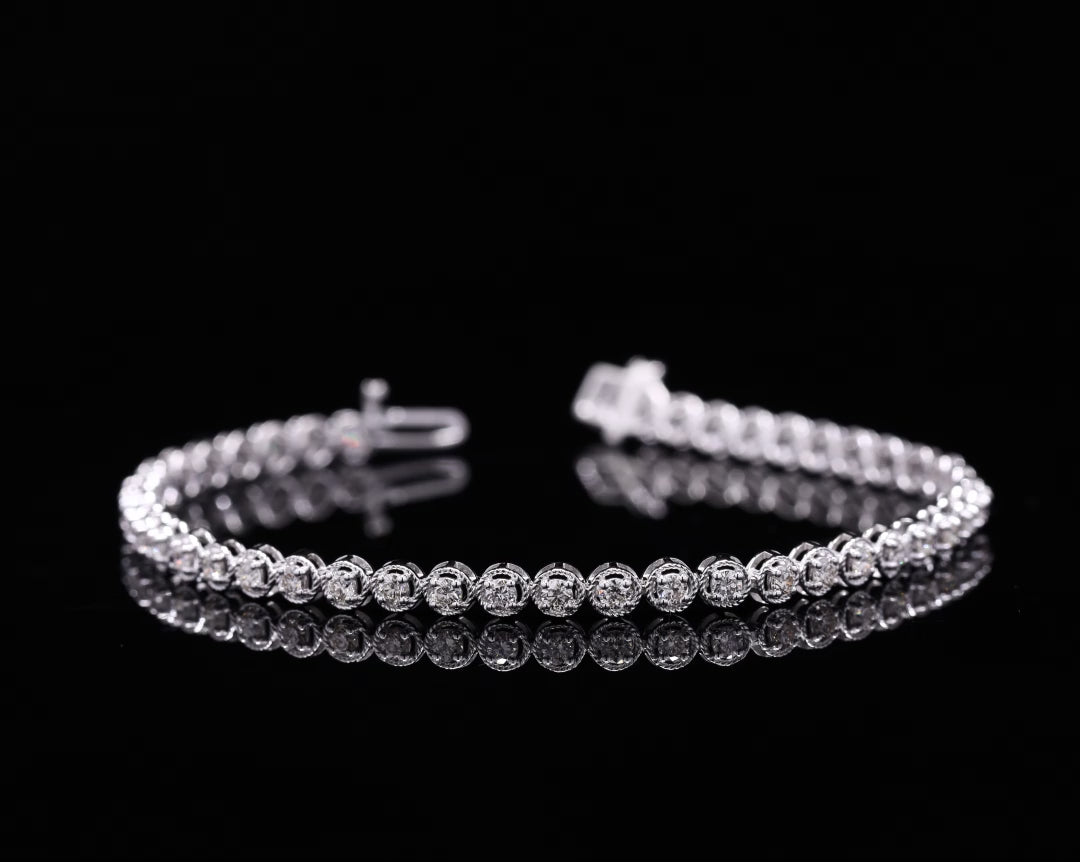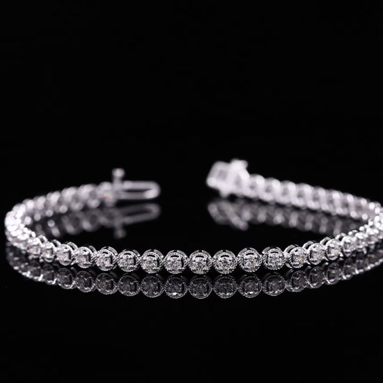 Luxurious white gold tennis bracelet with a continuous, articulated line of diamond cluster links.