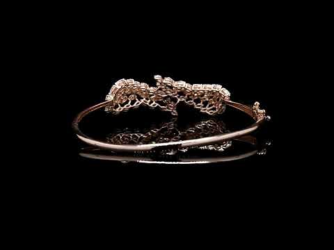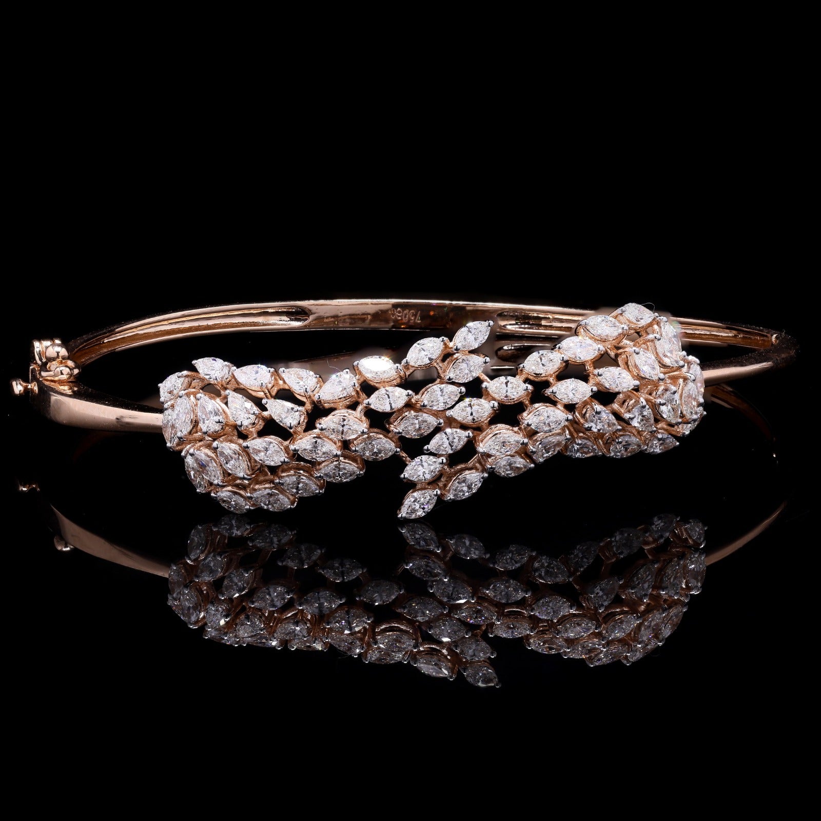 Rose gold diamond cuff with marquise leaf clusters.