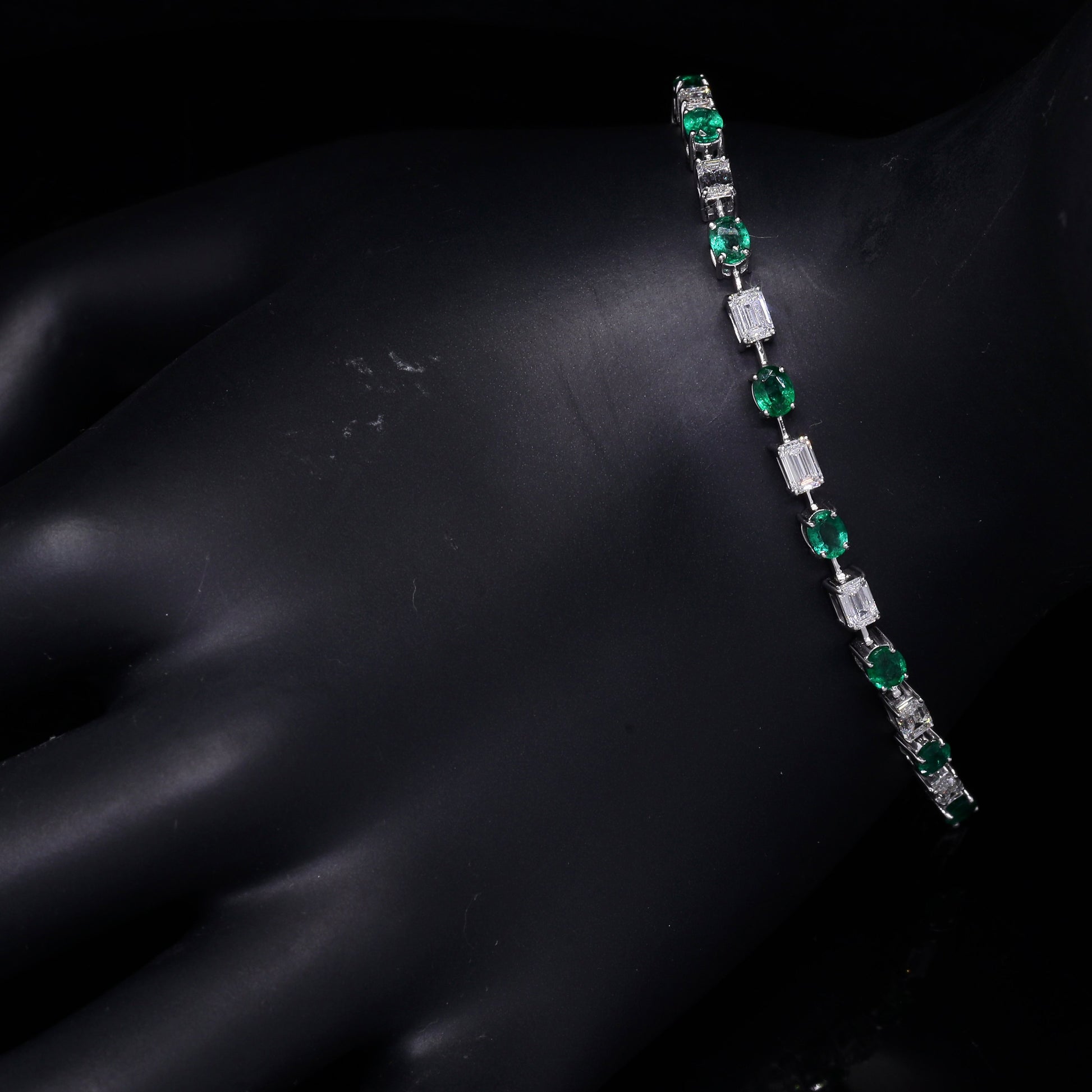 Emerald and baguette diamond tennis bracelet.