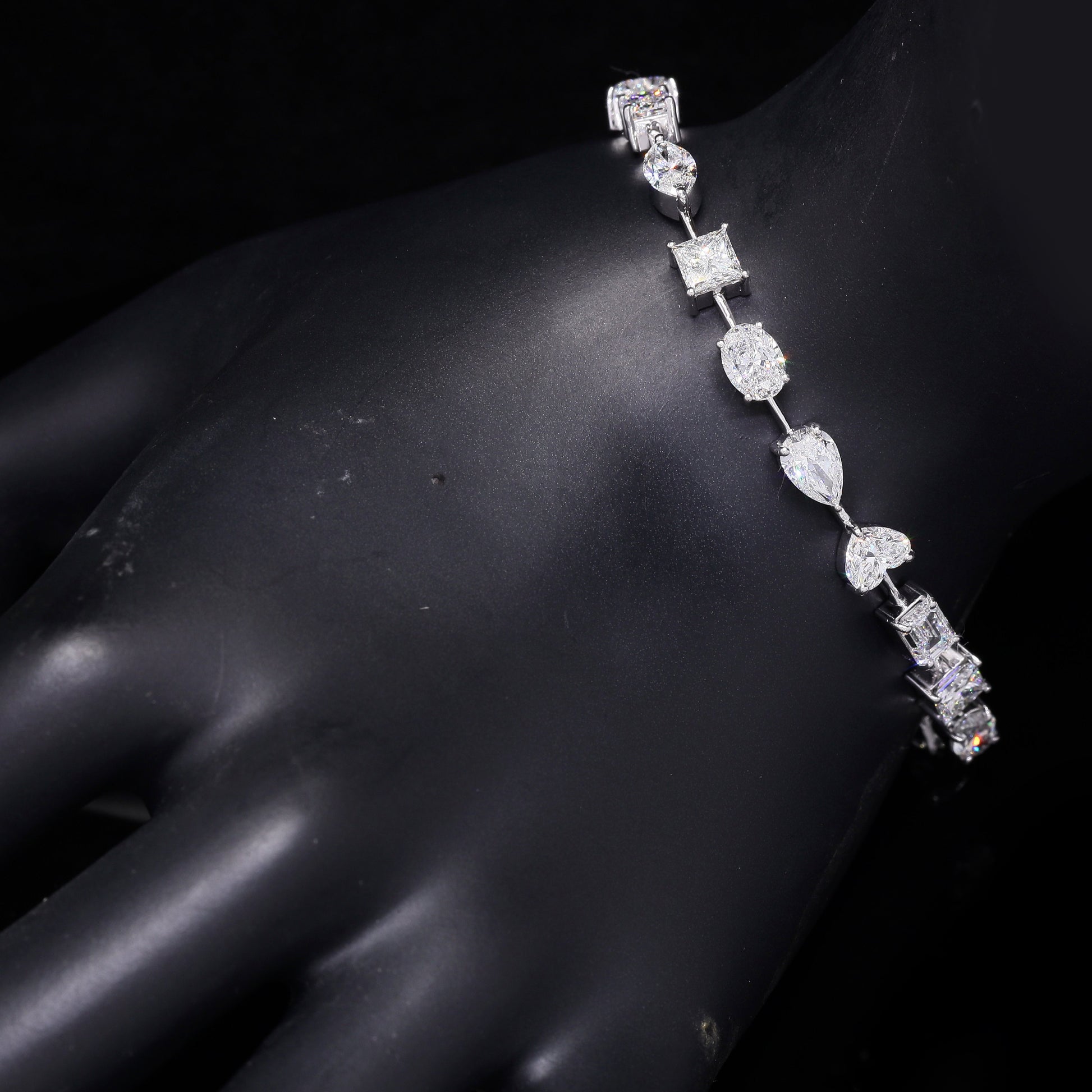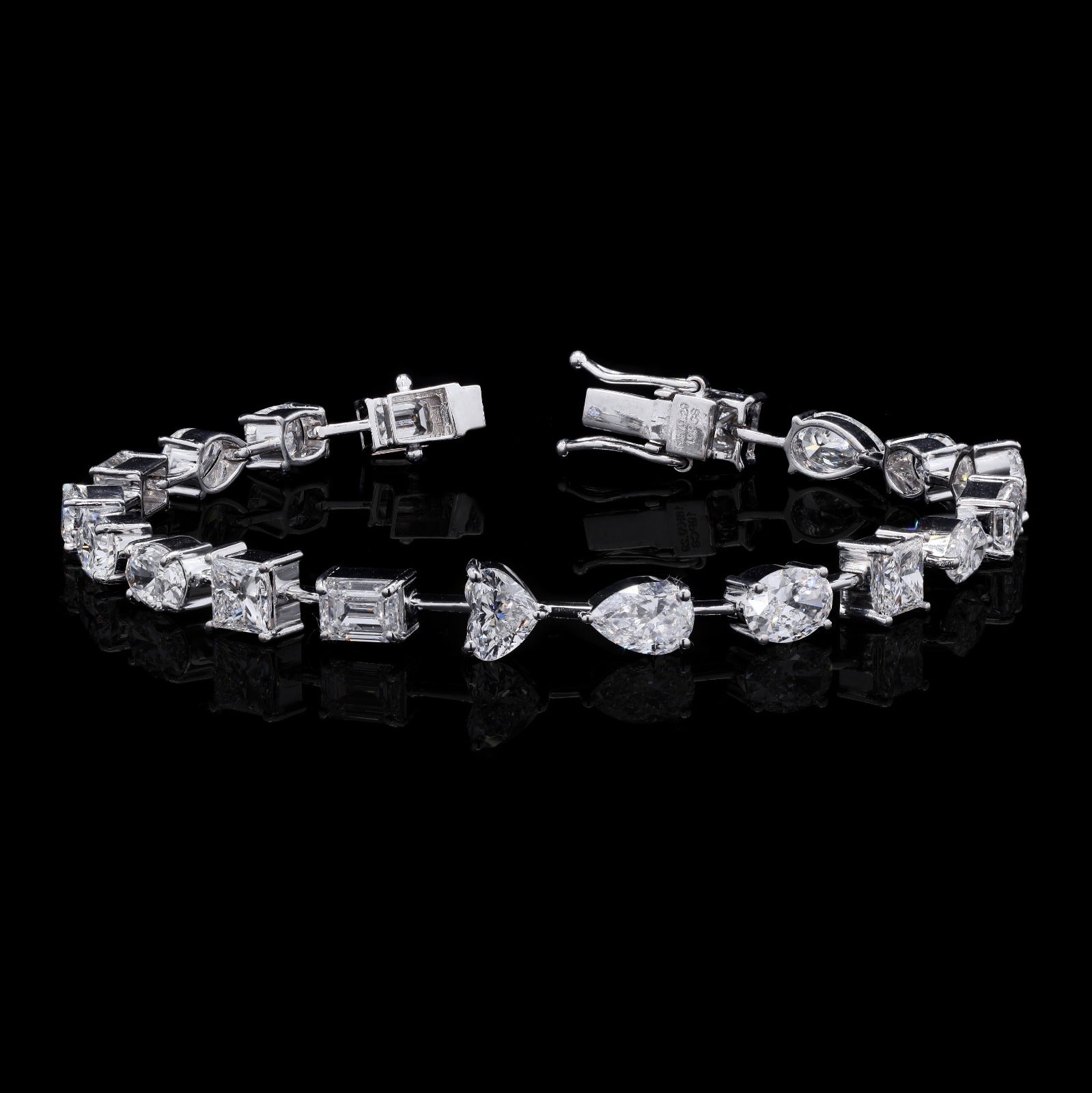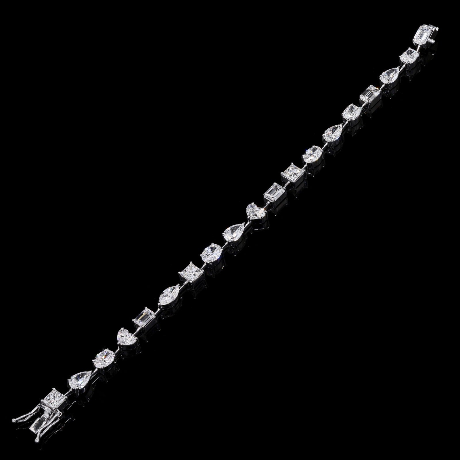 Brilliant-cut stones align with fancy shapes for modern style.