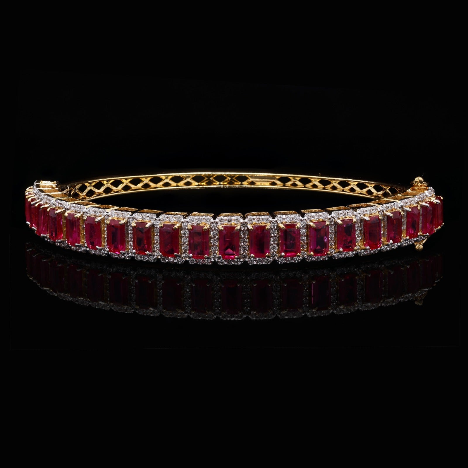 A resplendent ruby-encrusted gold bangle of sublime luxury.