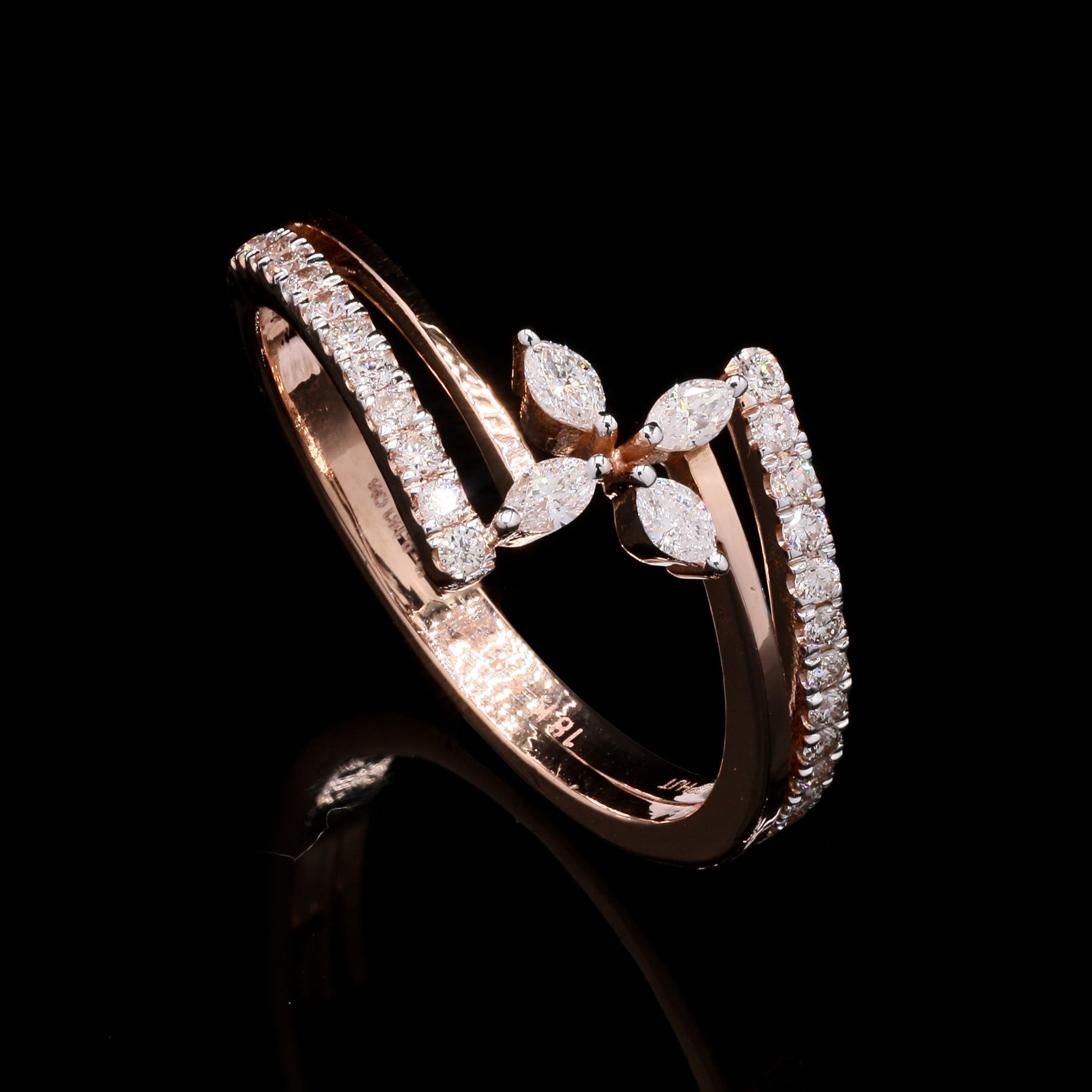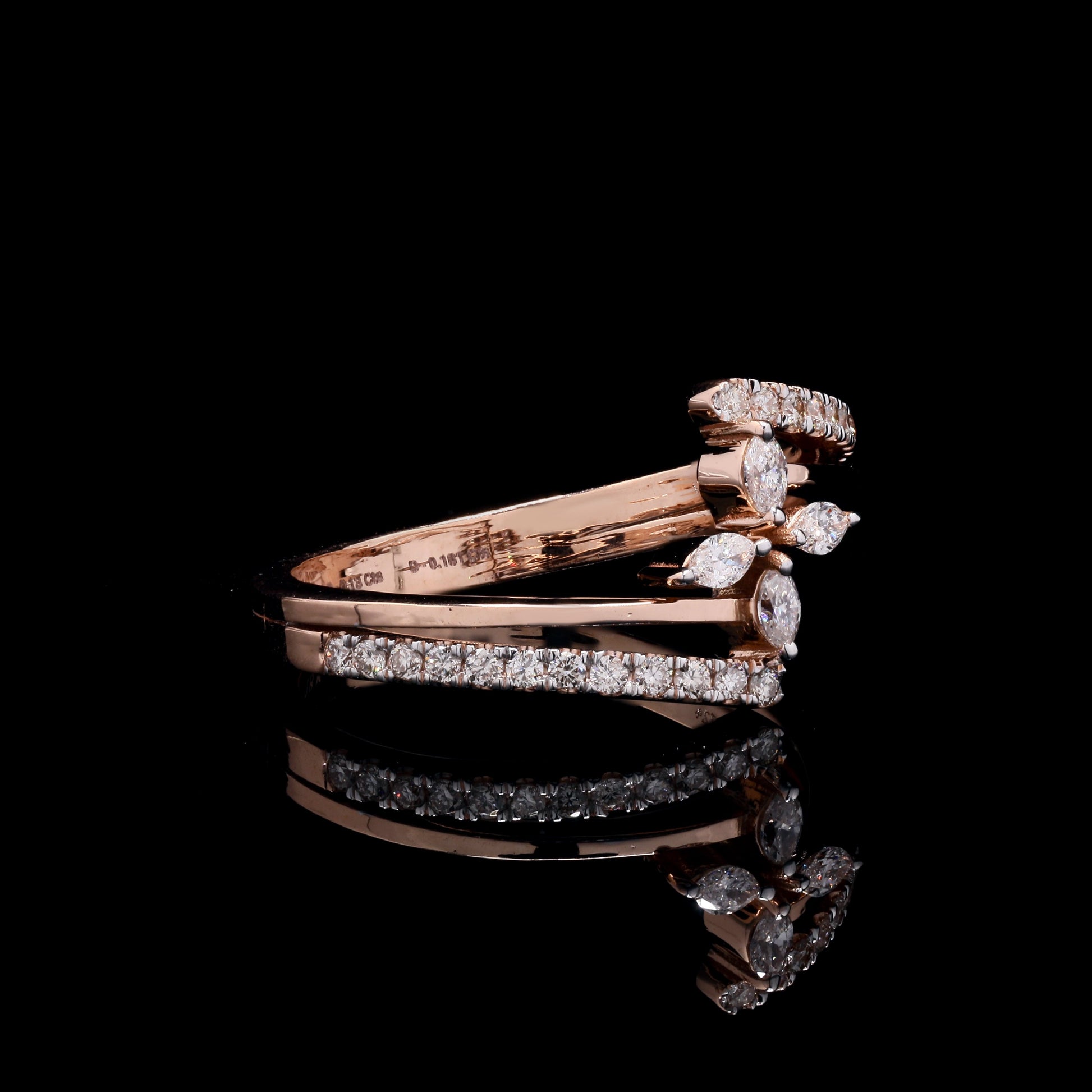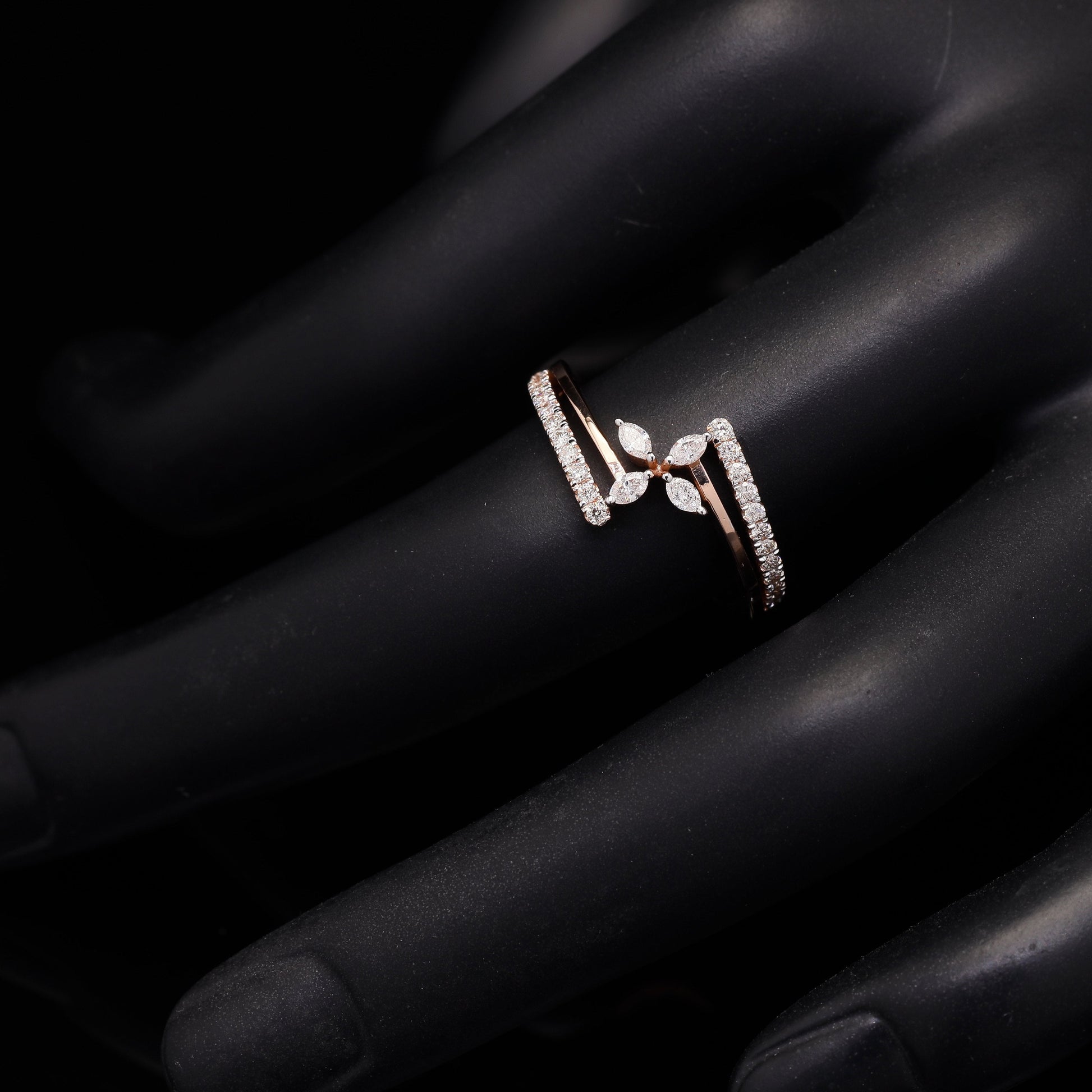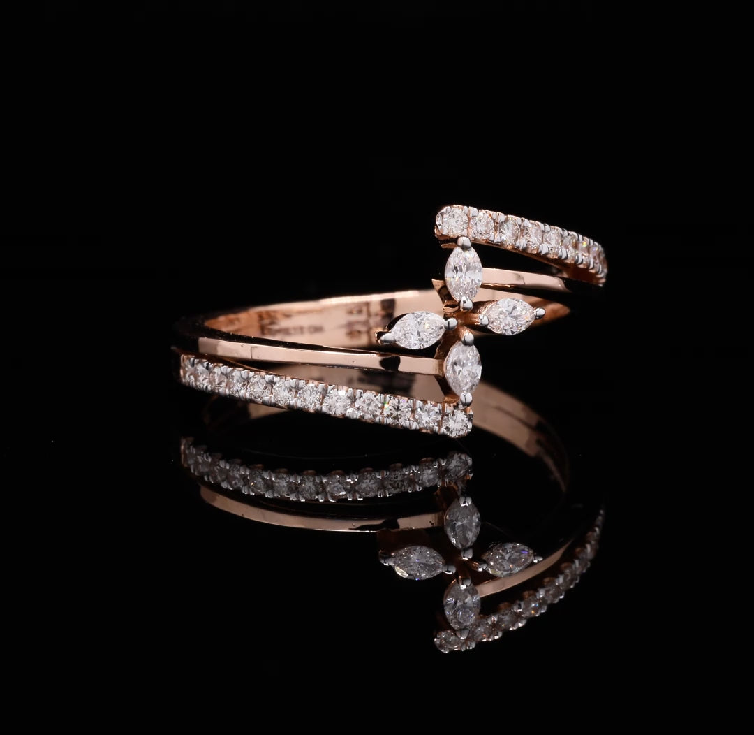 Rose gold chevron ring with pavé and marquise diamond cluster.