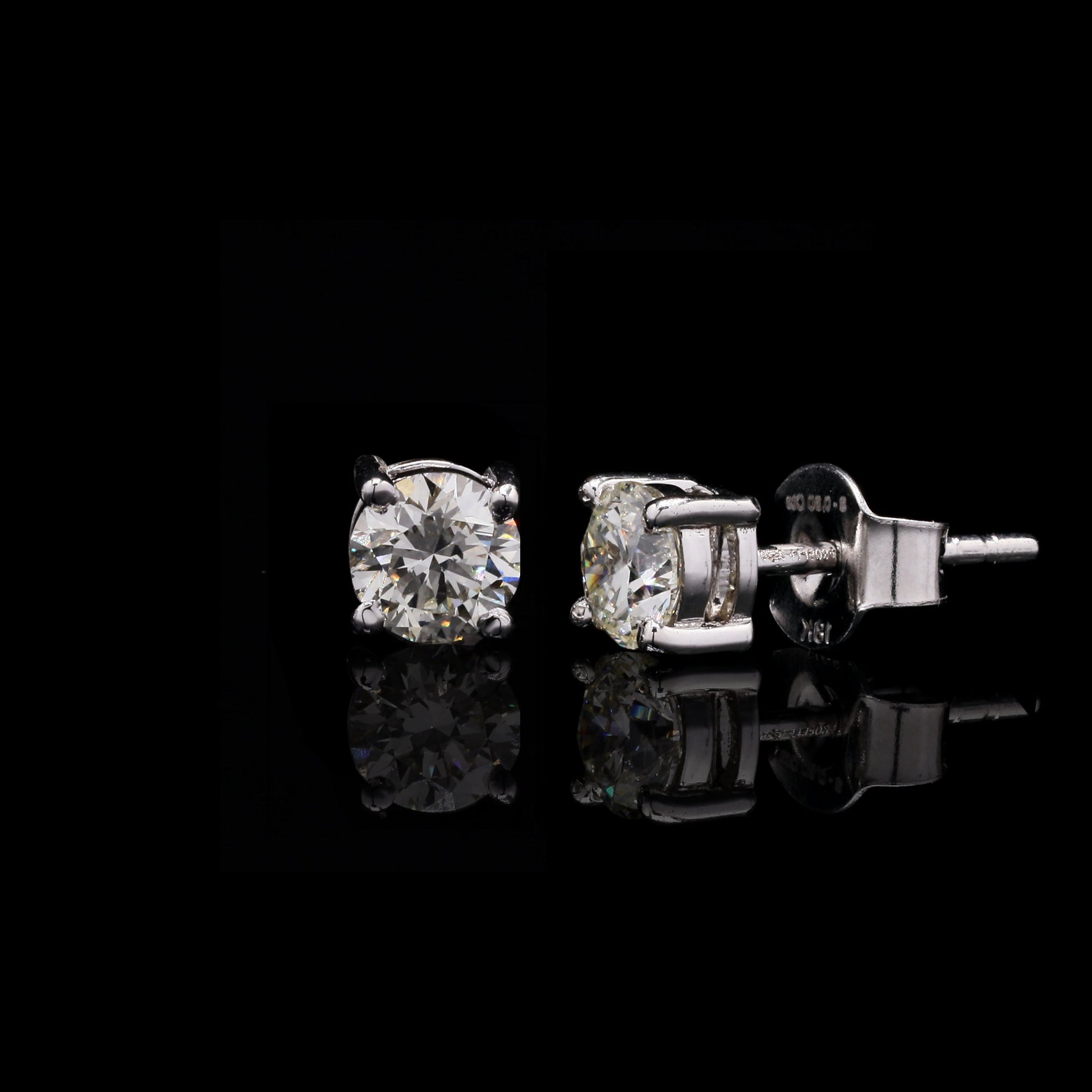 Flawless white gold diamond solitaire studs with a secure four-prong setting.