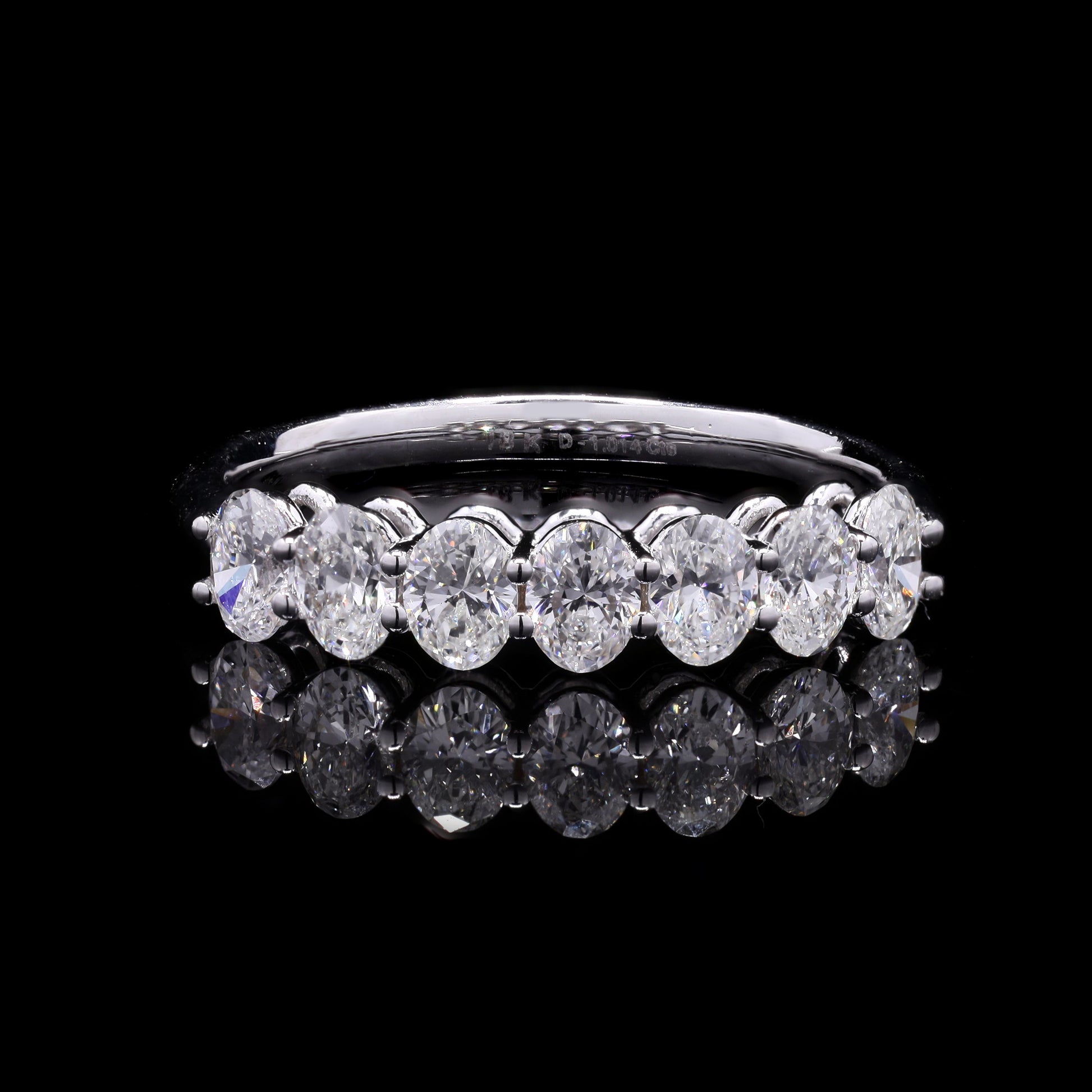 White gold oval diamond seven-stone band ring.