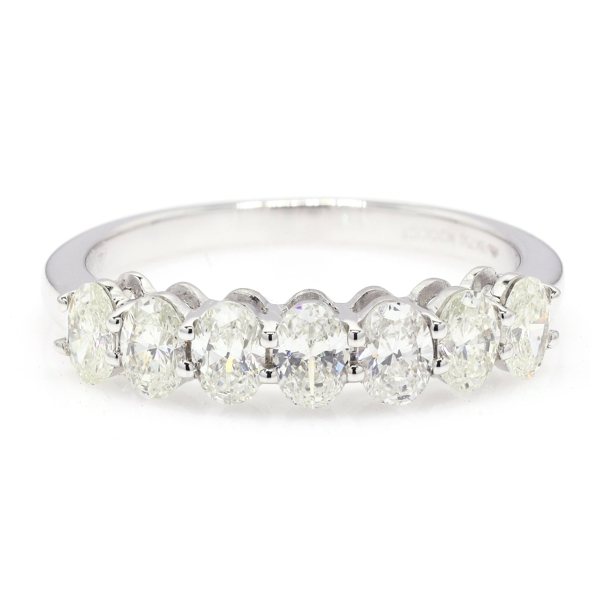 Oval diamond graduated seven-stone eternity band.