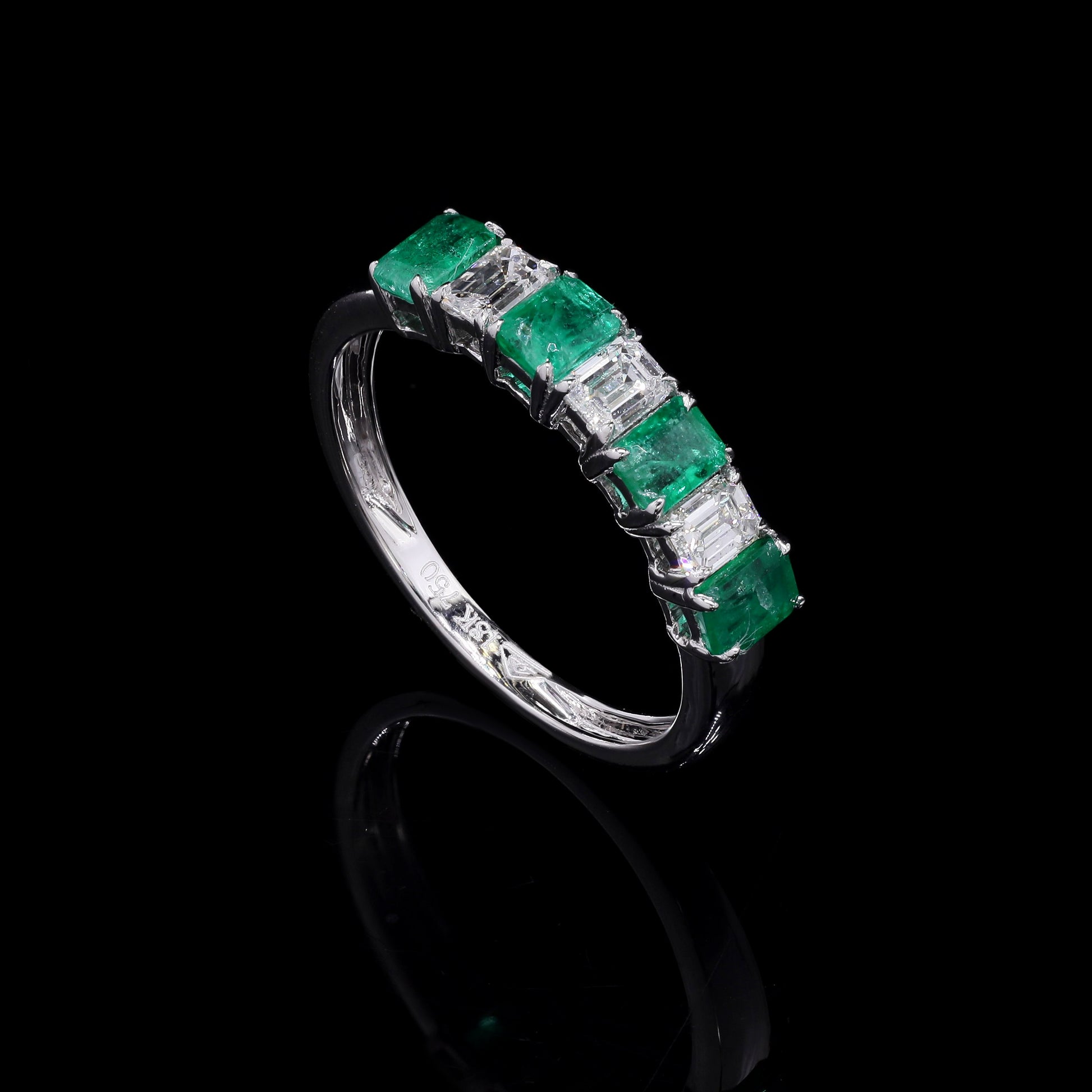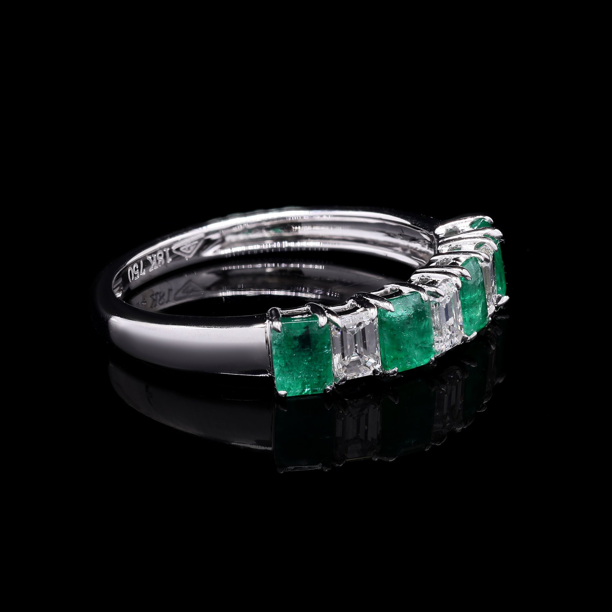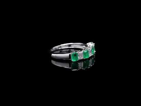 Emerald and diamond baguette half-eternity band.