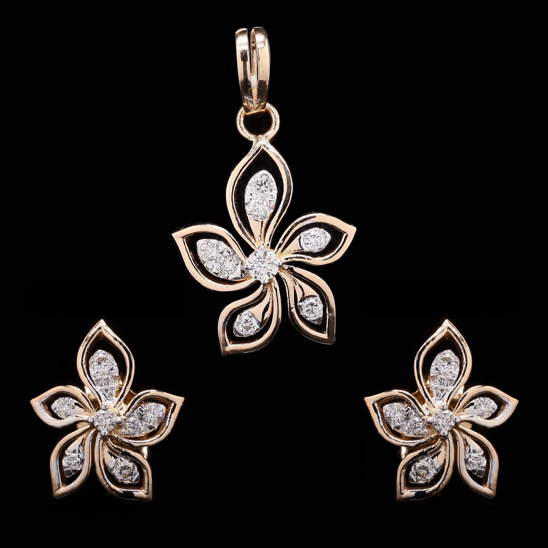 Five-petal open flower diamond jewelry set