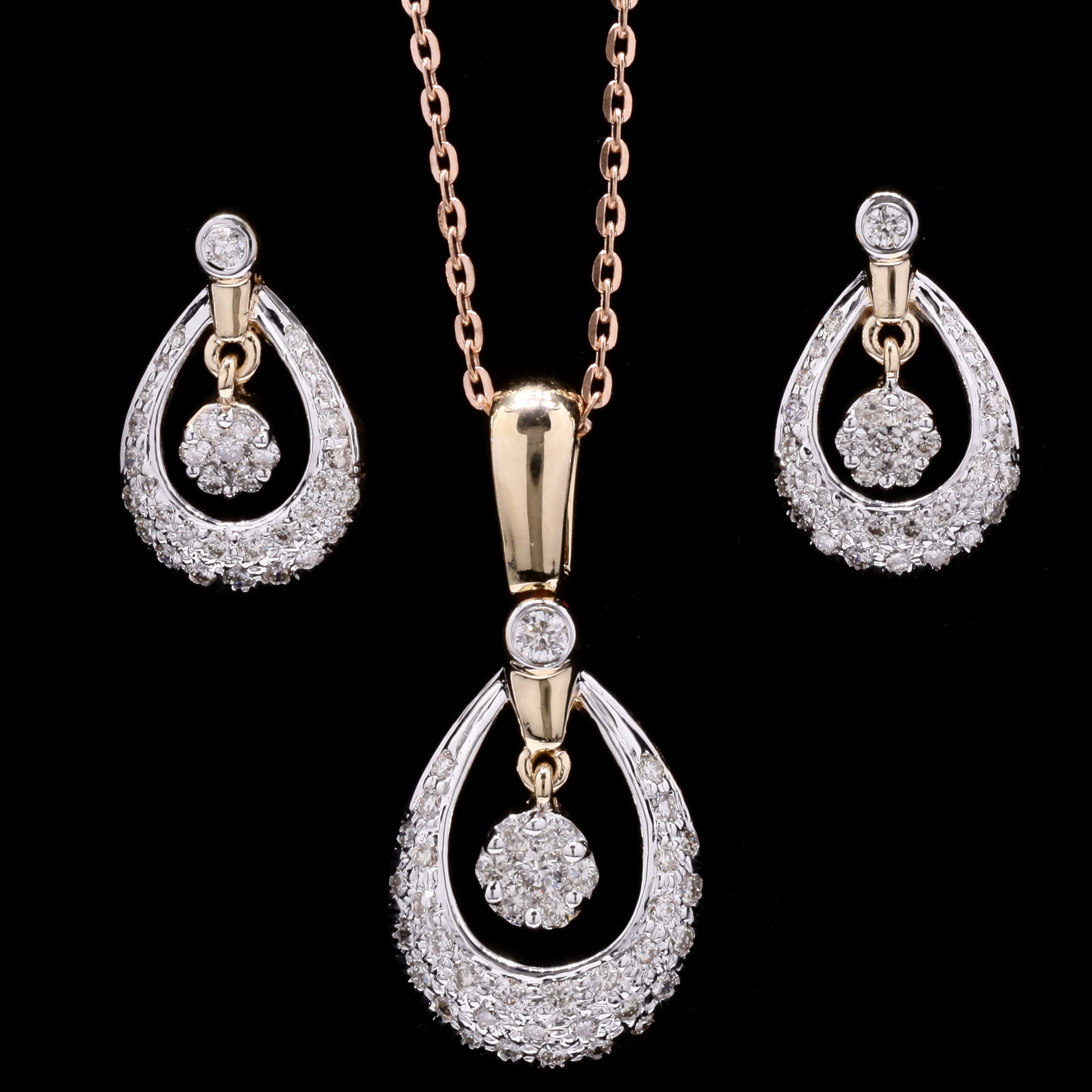 "Festooned pear-shaped jewels featuring a spherical diamond accent."