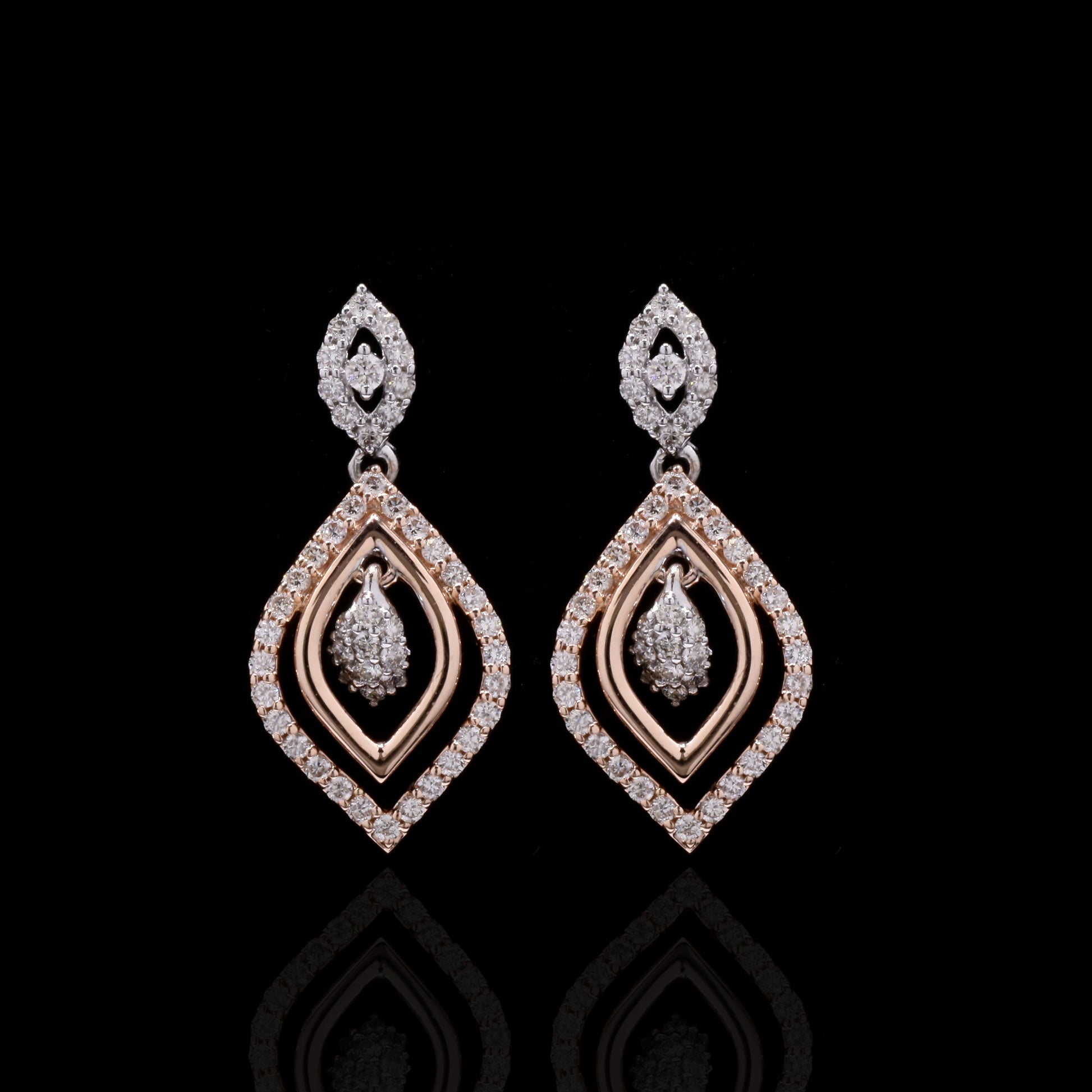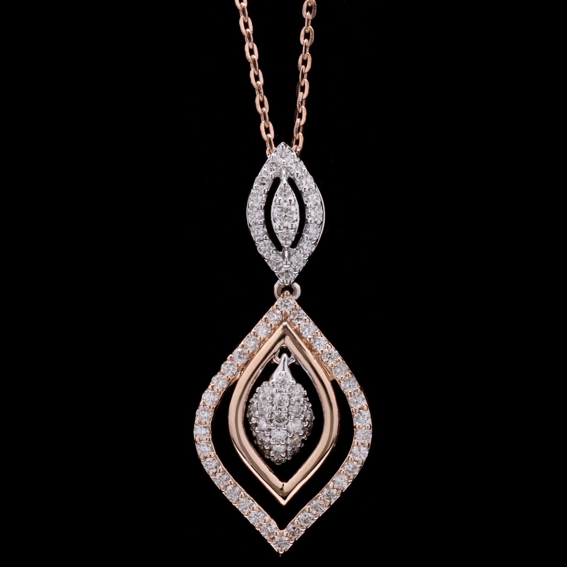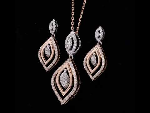 Bi-color gold diamond parure: marquise and teardrop pave motif.
