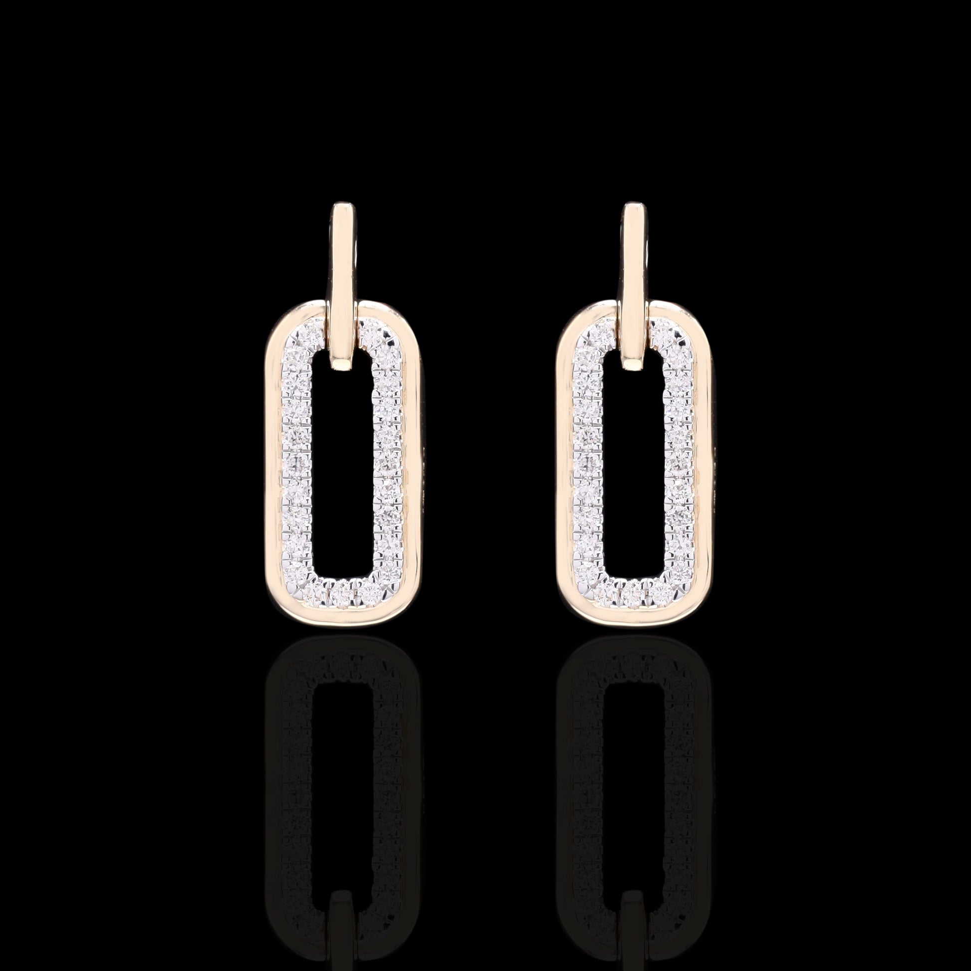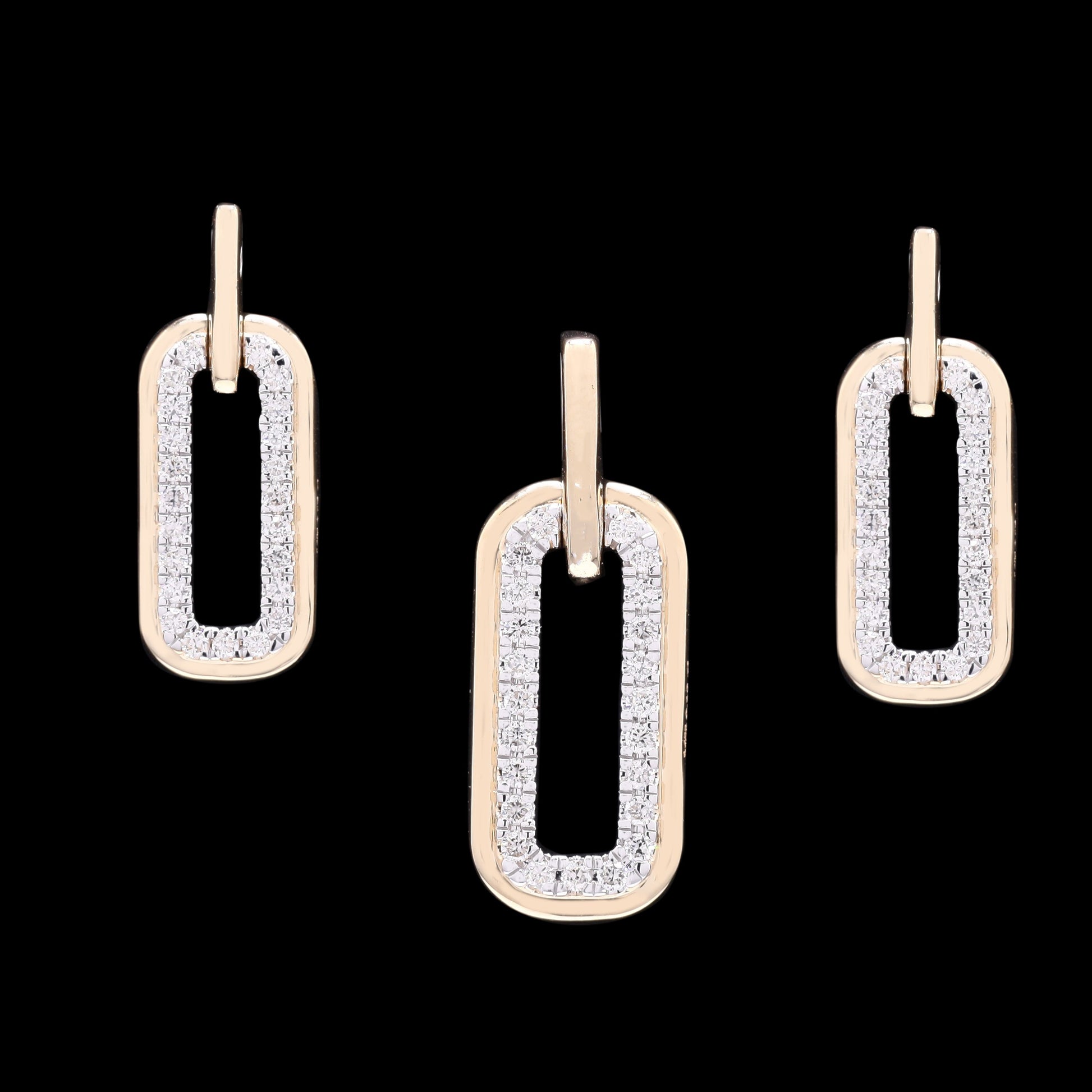 "Pave-set diamond parure featuring articulated, elongated gold links."
