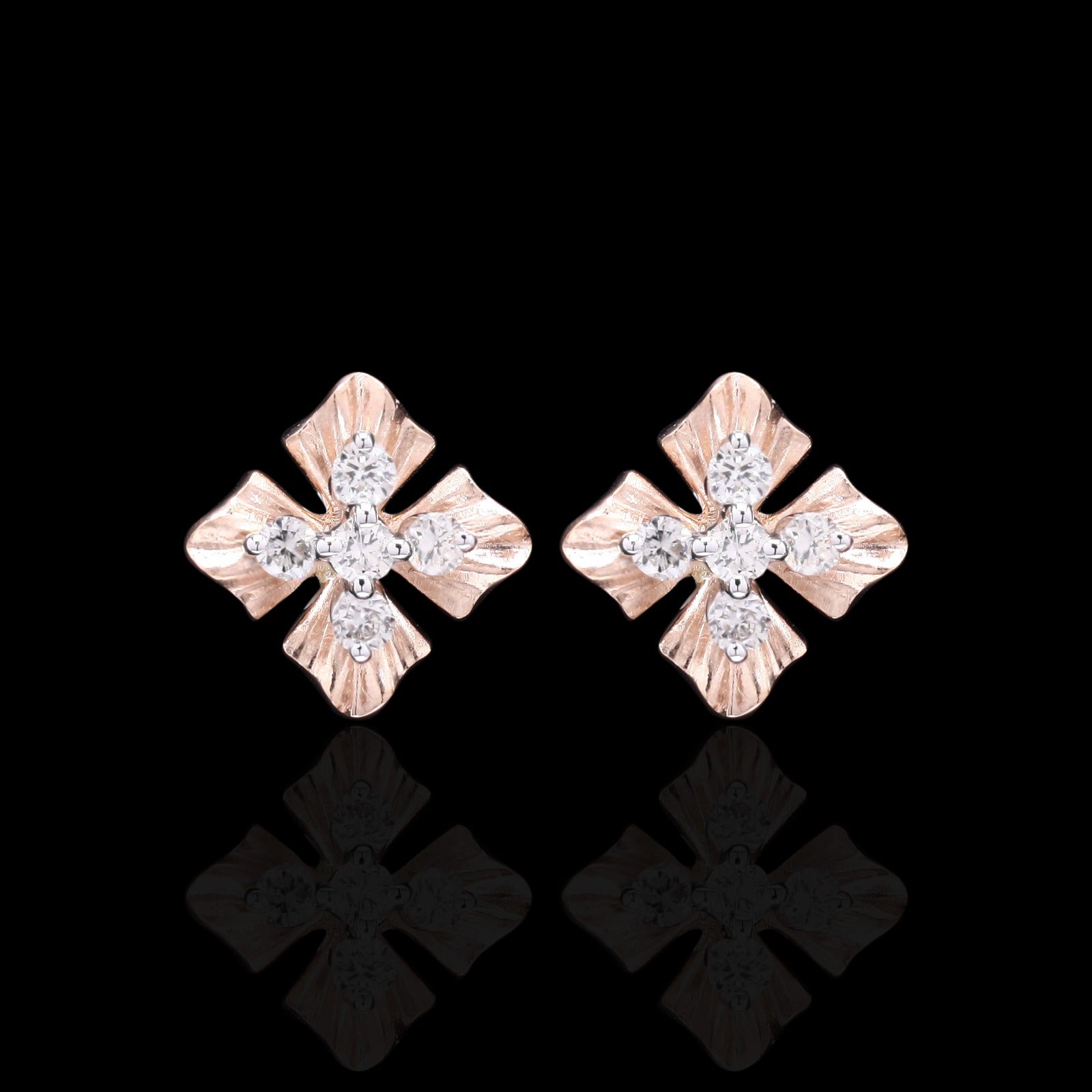 "Quatrefoil rose gold parure set with a nexus of four brilliant-cut diamonds."