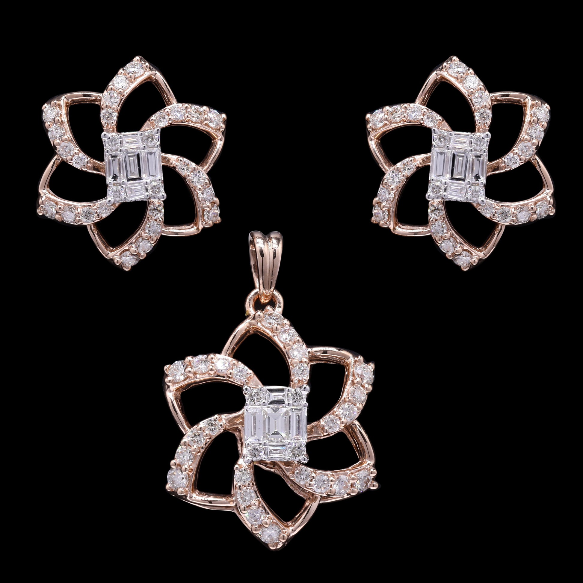 "Cushion-shaped diamond cluster parure with rope-textured yellow gold trim."
