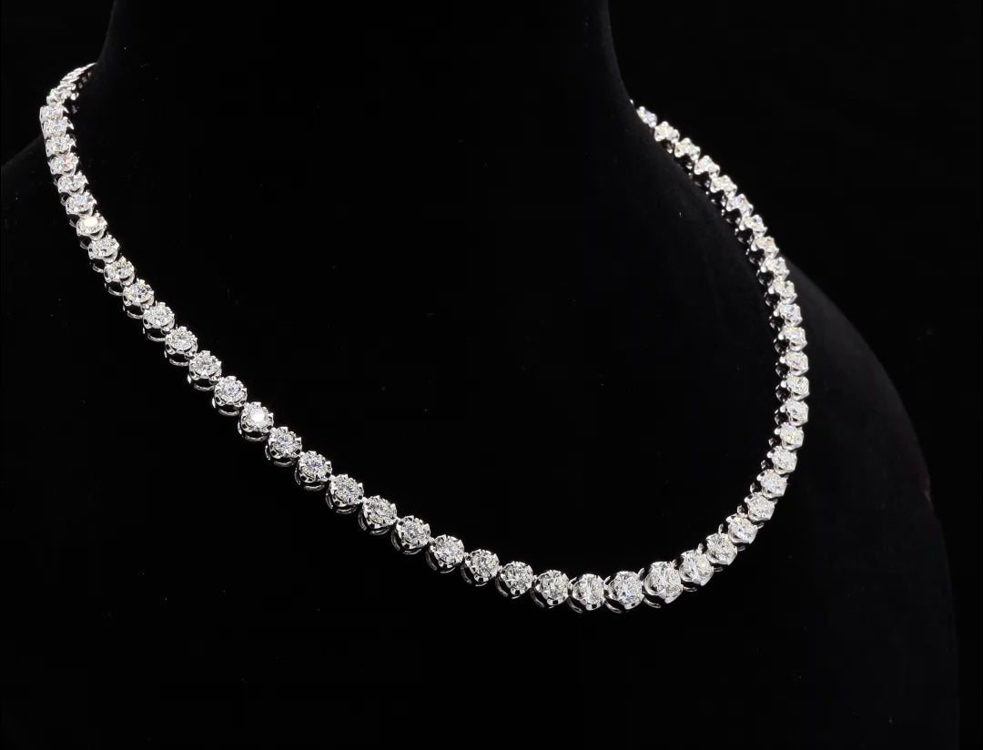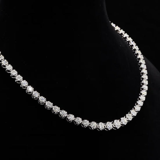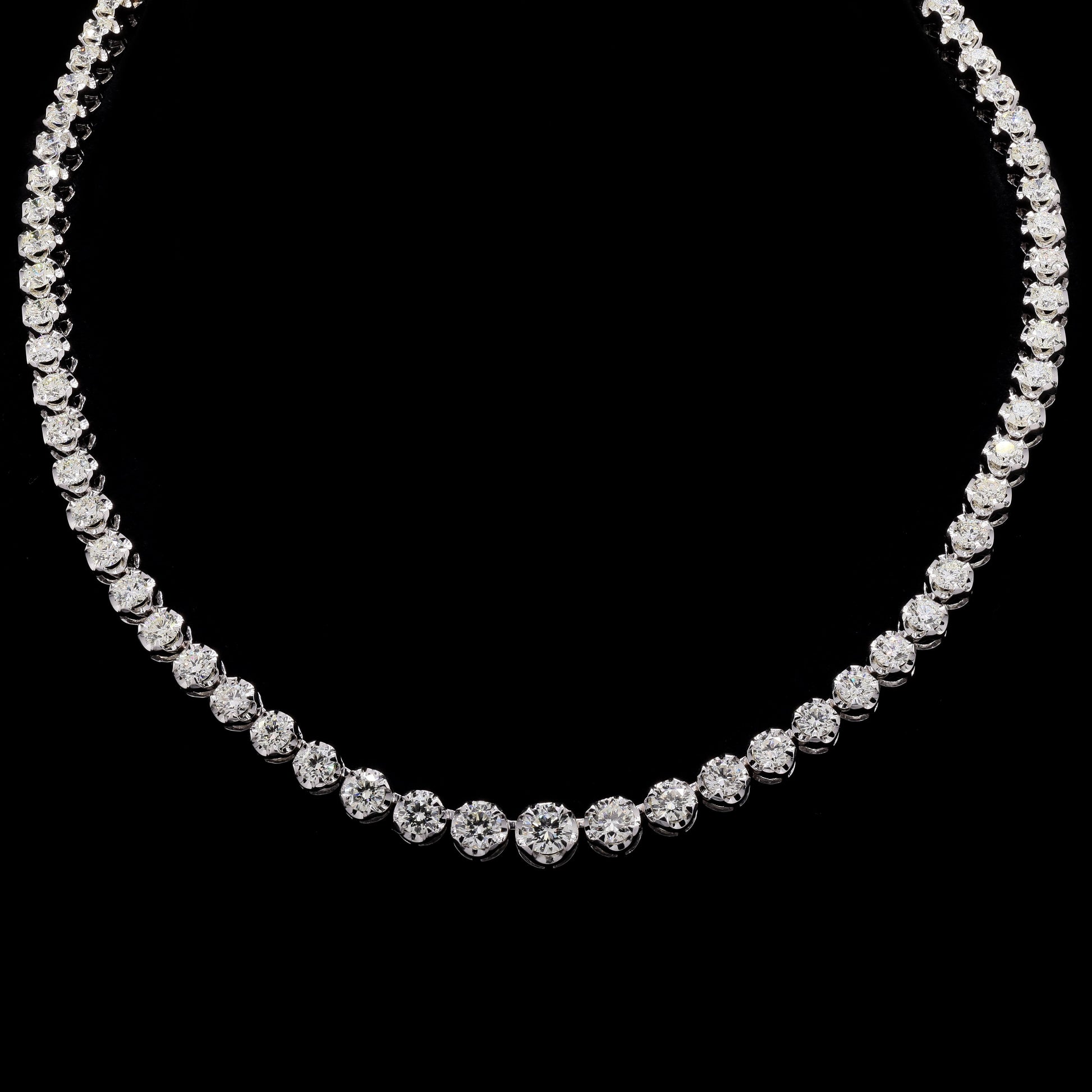 Graduated diamond tennis necklace, featuring round brilliant-cut stones.